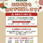 日頃よりご愛顧いただきまして誠にありがとうございます。年末年始の営業日程をお知らせいたします。 年末年始も皆様のご来...